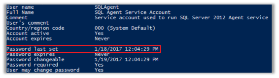 Servis hesaplarının (SQL Agent gibi) şifreleri genelde kurulduktan sonra değiştirilmez. Bunun kontrolü aşağıdaki komut ile PowerShell’den yapılabilir: